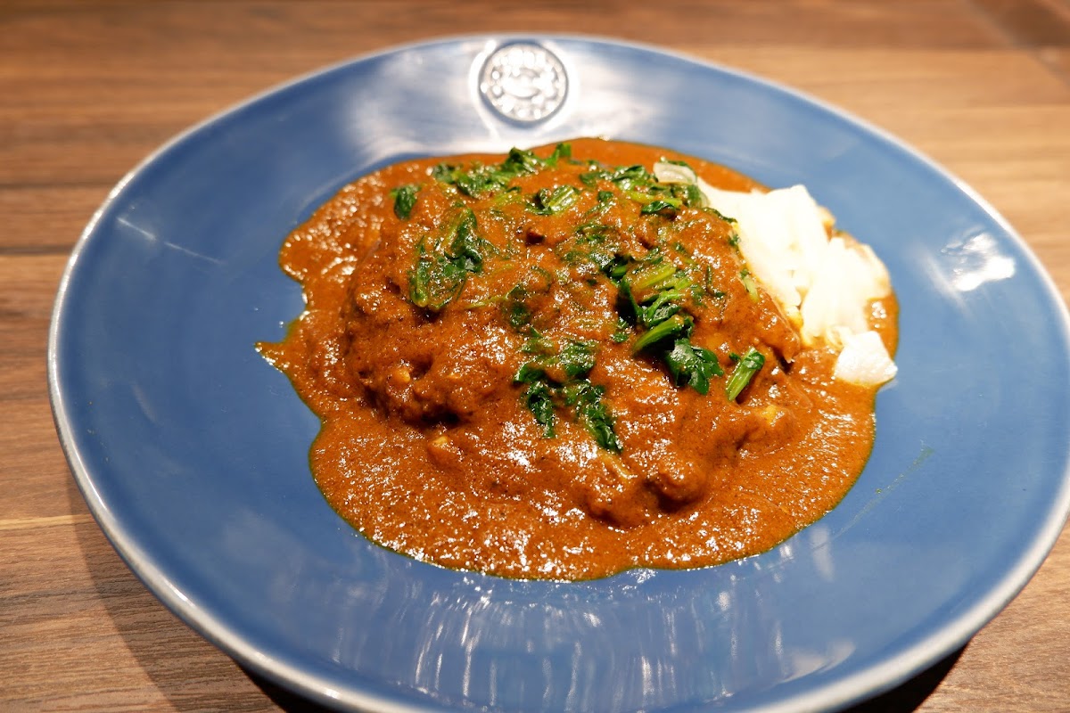 Jazz + Curry = . Nice relaxing ambiance. Super flavorful curry packed with complex flavors. The achar, pickled daikon & ginger with Indian spices, and Kyoto made steak sauce was very delicious. Steak sauce had a little heat which built up. Kind staff and we got to watch them make the curry. The portion size is perfect too.