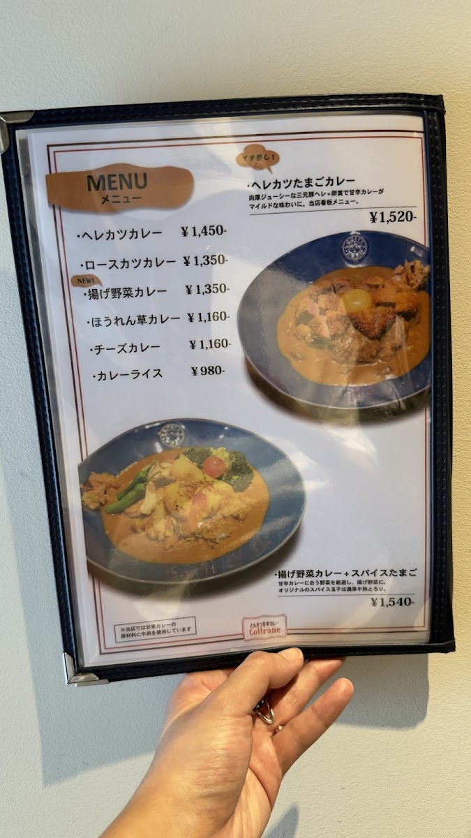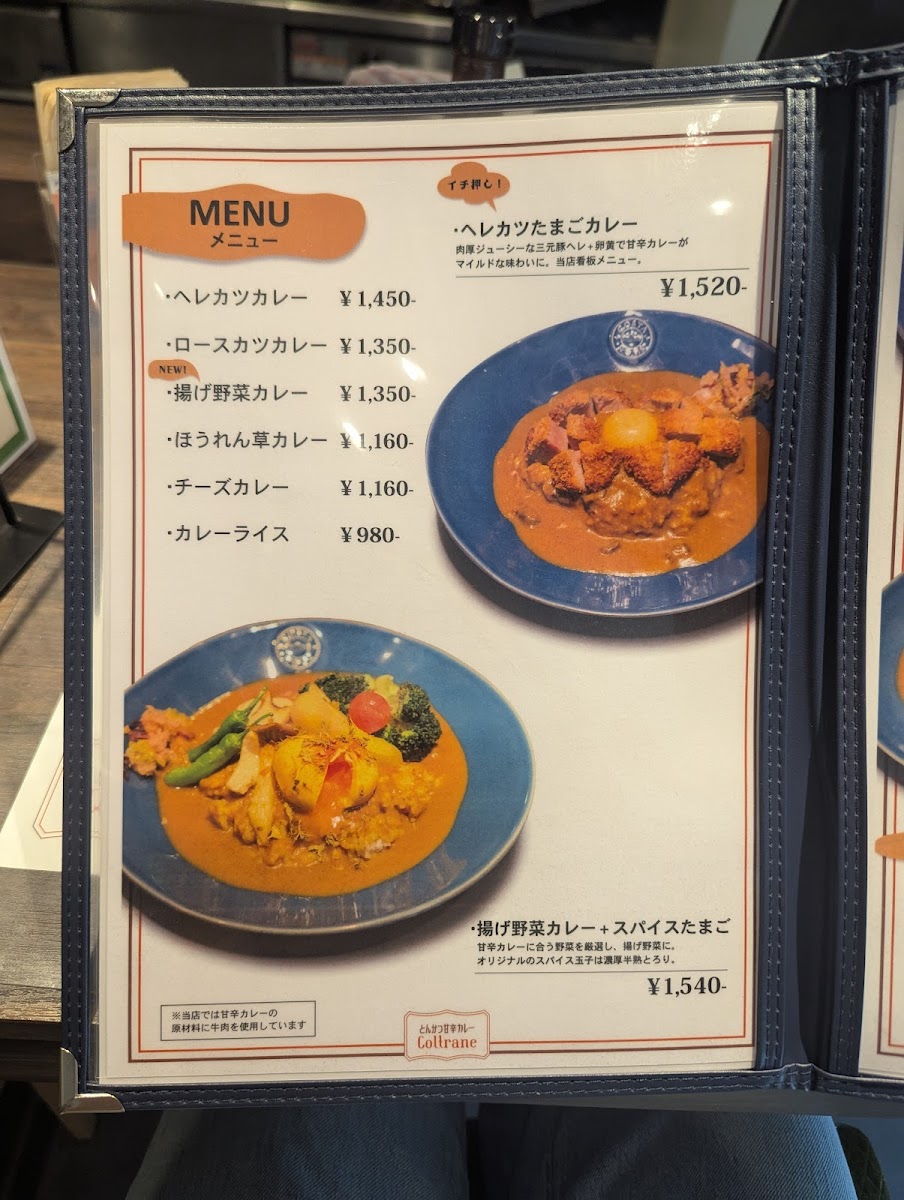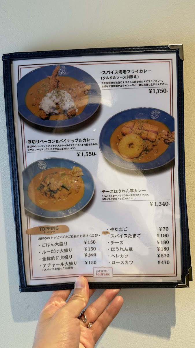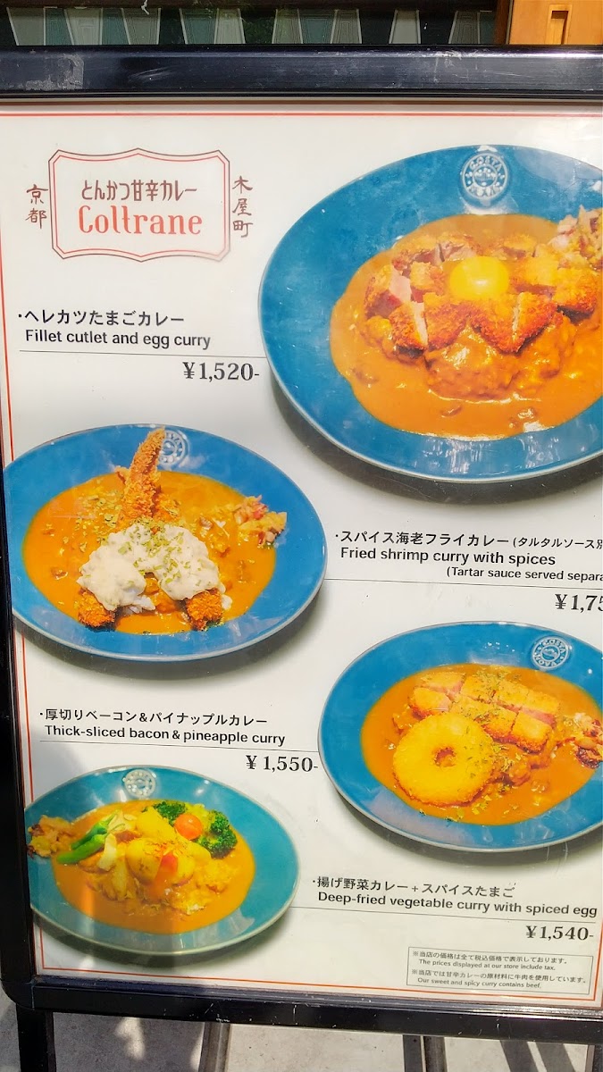 The menu at Coltrane offers a straightforward selection centered around comforting Japanese curry dishes, making it a quiet refuge for those seeking a relaxed meal. The focus is on hearty plates that balance rich, mildly sweet curry sauce with tender cuts of pork, perfect for a satisfying lunch or a calm dinner after a day of exploring Kyoto.